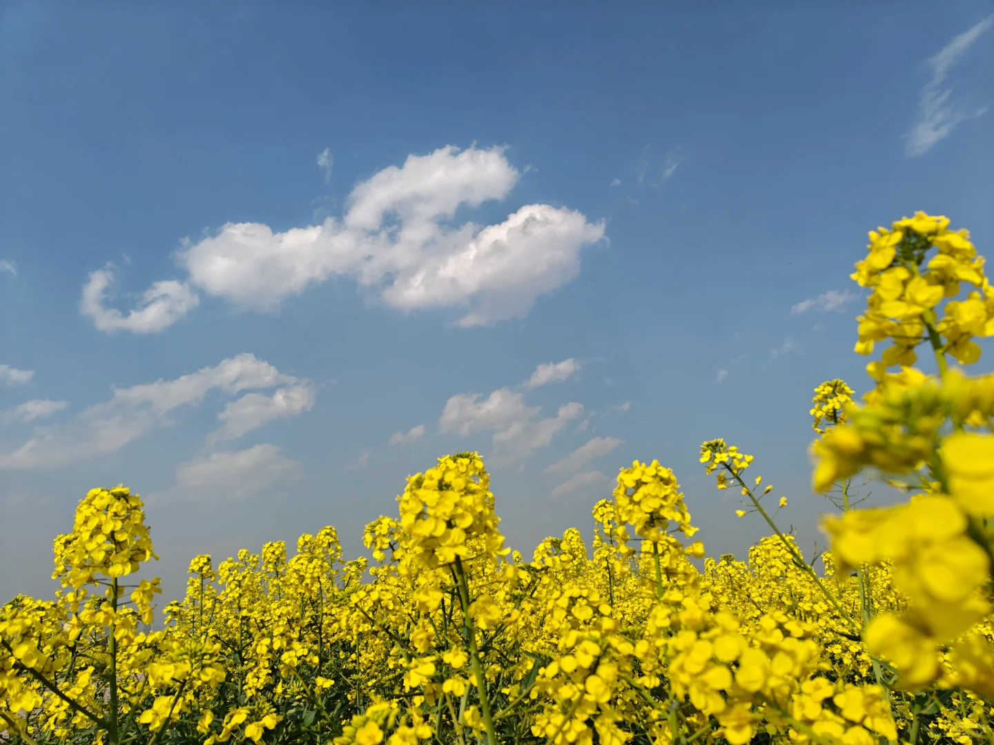 当印度洋的暖风裹着水汽翻过哀牢山,罗平坝子的油菜花便醒了。这片藏在滇、桂、黔接壤处的地皮,像被谁打翻了调色盘,整夜之间泼出百万亩金黄。三月的阳光斜斜洒下,花浪随风转动,连空气都浸着蜜香。我踩着湿淋淋的田埂,看辽远喀斯特峰林从花海中拔地而起,隐隐间竟分不清是山托起了花,还是花归并了山。