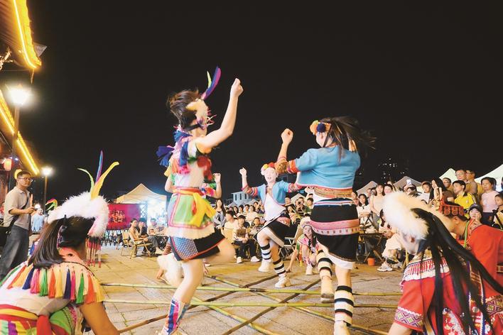 4月30日晚,一场展现峻岭族独到文化魔力的非遗跳舞展演行径在漳州古城精彩上演。