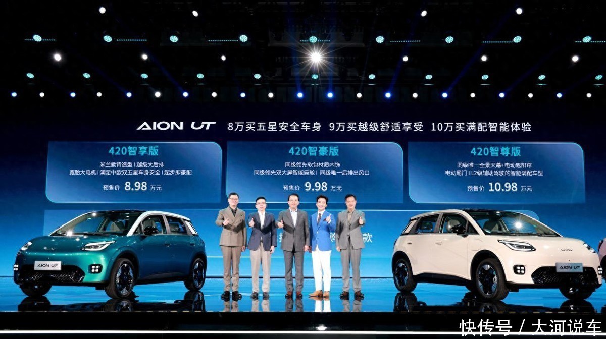直到1月6日,埃安UT鹦鹉龙追究开启预售。这款产物定位于A级车型,竞品光显是海豚、星愿、ID.3等车型,尺寸方面可以称得上是同级竞品中的最大尺寸和最大空间,新车共推出420智享版、420智豪版、420智尊版3个版块,预售价8.98万元-10.98万元,还有99元抵1000元尾款的预售权利,这个预售价钱确实让东说念主吃惊,同期预售权利无为易懂,从侧面阐述了其大厂实力。难怪广汽埃安副总司理肖勇在现场喊话:A级颜霸,8万通吃。其各人代言东说念主郭麒麟更是用“断层高出”证明了埃安UT的价值感。