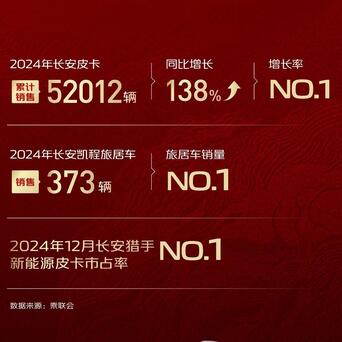 【同比增长138%足球投注app,长安皮卡2024年销量超5.2万辆】日前,据长安皮卡最新发布的数据久了,2024年长安皮卡累计销量超5.2万辆足球投注app,同比增长138%,增长率第一。在夙昔的2024年,长安皮卡燃油+新动力并举策略,以丰富的产物矩阵不停刷新销量,成为皮卡市集黑马。其中,长安凯程旅居车2024年销量373辆,位居旅居车市集销量第一;而手脚世界首款超等大增程皮卡,长安猎手以出色的进展赢得市集认同,2024年新动力皮卡市占率第一。