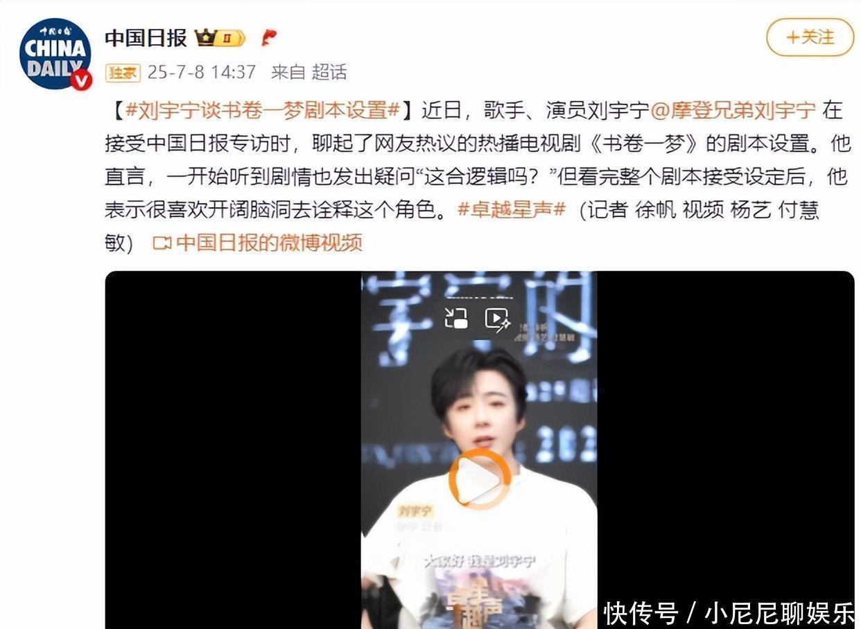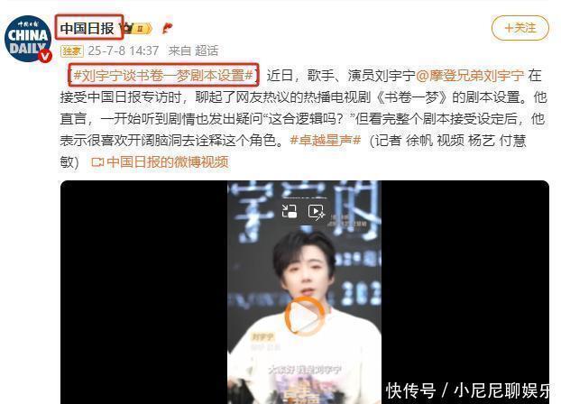 7月中国日报的专访挺突出义。 主执东说念主问《书卷一梦》那么雷的设定,你若何敢接? 刘宇宁乐了:“我第一响应亦然‘这什么玩意儿’! 可脑灵通上天了不挺好玩? ”他这性子,即是破圈的全能钥匙——