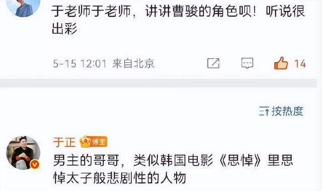 当《玉茗茶骨》官宣曹骏友情出演后,好多网友都跑到于正酬酢账号留言,规画曹骏饰演的脚色是什么类型的,而于清廉接回应网友,他暗示:曹骏饰演的是男主的哥哥,有些近似电影《想悼》里想悼太子般悲催性的东说念主物。