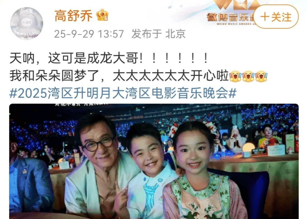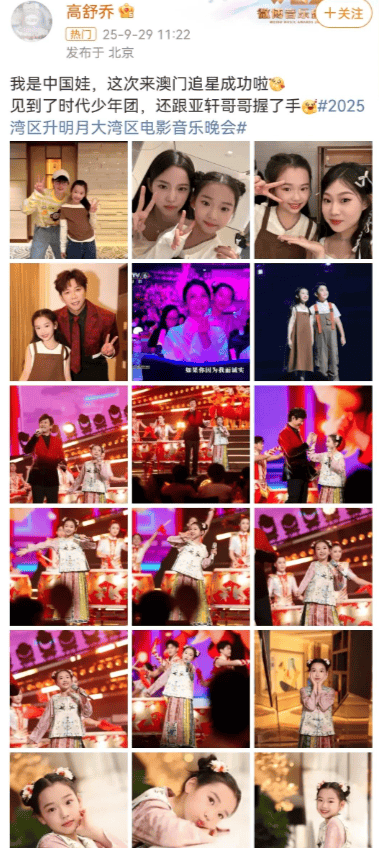 而董璇还被网友说成恋爱脑,莫得儿子业绩心,如今的小酒窝当竟然娱圈炙手可热的星二代了,在9月29日,小酒窝还在我方的搪塞平台上晒出了合影,此次在“湾区升明月”的晚会上,小酒窝追星告成,和周深、成龙等等合影,此次最瞩宗旨还当属她和沈佳润、朵朵了。