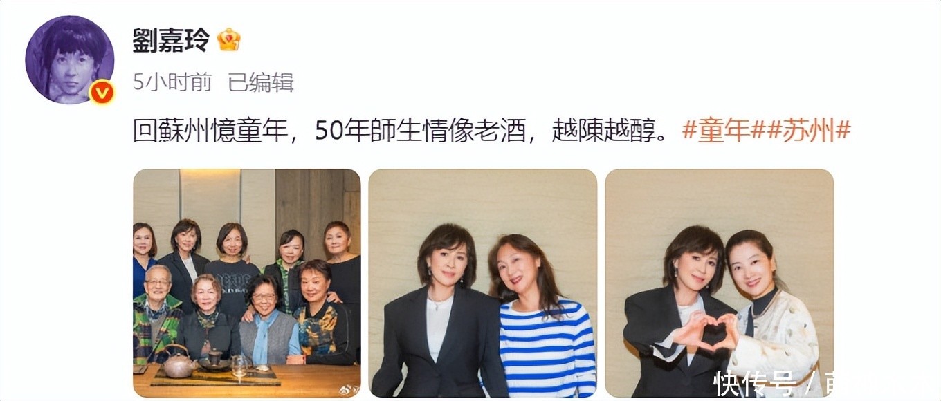 刘嘉玲回到家乡苏州忆童年,并晒出了与50大哥同学的碰面合影照,令东说念主出乎预念念的是刘嘉玲的景象莫得与老同学们拉开差距,反而越发看着僵硬。