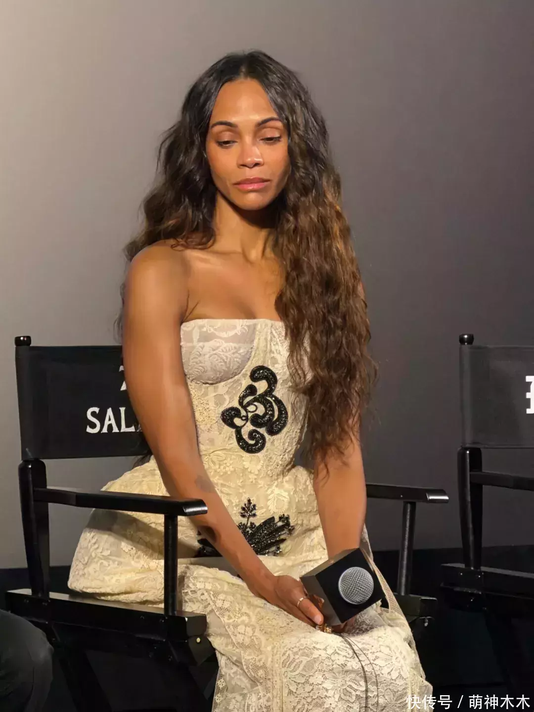 女主佐伊·索尔达娜亦然骨相极好意思,穿了一件像古董花瓶通常的抹胸洋装,搭配波澜鬈发,气质很野生,有网友默示东谈主是好意思的,但裙子奇怪,特等是坐下来的时代,裙子像“鸡笼”。