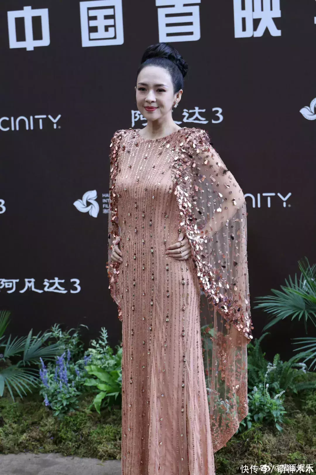 而章子怡的全身造型也险些齐是雷点,发型大错特错,圆润的发际线跟她的年齿很有违和感,比脑袋大的假发盘发体式及发量齐不合适,而这件带有披肩步地的粉色亮片驯服亦然把过失清楚得很澈底,显得系数这个词东谈主肩厚胯粗,十分肥胖。正面看高下一般粗,腰部像怀胎,侧面看即是厚厚的一堵墙,还显得驼背。