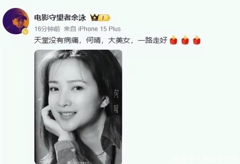 配文写说念:“天国莫得病痛,何晴,大好意思女,一齐走好。”讲话中尽是恻然与敬意。