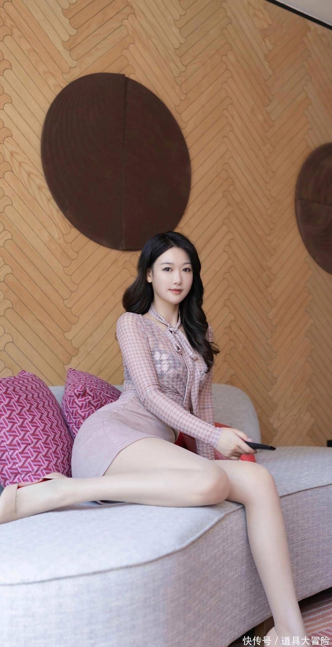 唐安琪此次的穿搭简直好意思到新高度!粉调的格纹透视上衣,搭配同色系的高腰包臀裙,整个这个词look几乎便是优雅与性感的无缺相接。上衣的透视操办,若有若无地展现出肌肤,增添了几分微妙感,而高腰裙则无缺地勾画出她修长的腿部线条,让东说念主一眼就扎眼到她的身材上风。