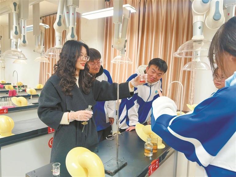 1月15日,定边中学化学老诚朱琳在给学生上实验课。 本报记者 刘正龙摄